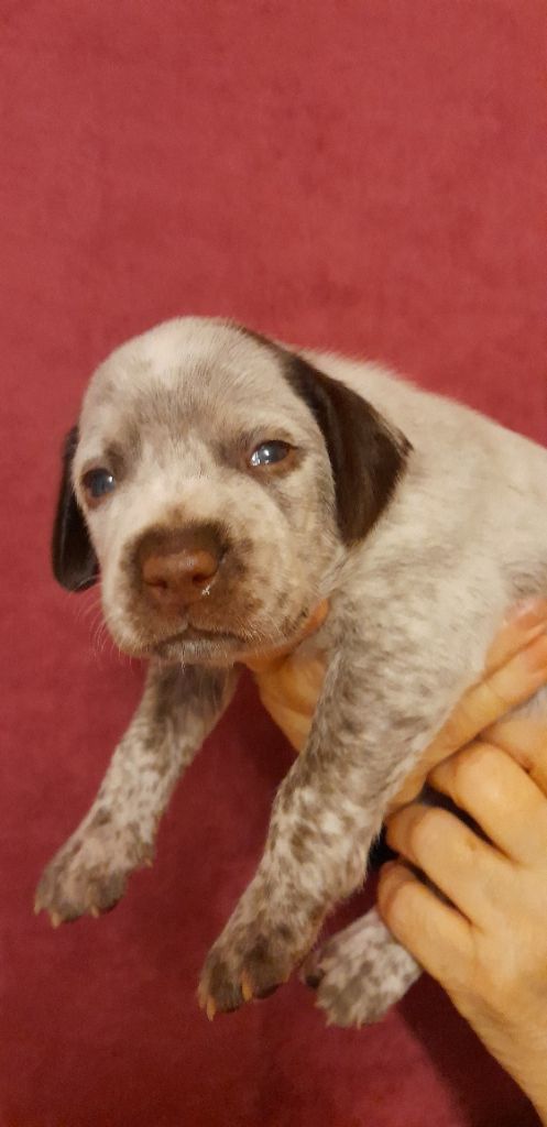 Femelle queue courte naturelle, couleur "Lie de Vin" Très belle dans le standard et la pigmentation, copie conforme de sa mère "Pistache"